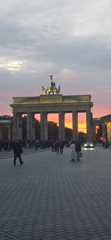 Zum Abschluss eines fantastischen Tages besuchten wir das Wahrzeichen Berlins: das Brandenburger Tor. Gemeinsam genossen wir den Anblick dieses historischen Tores, ließen den Tag Revue passieren und schossen noch ein paar letzte Erinnerungsfotos.