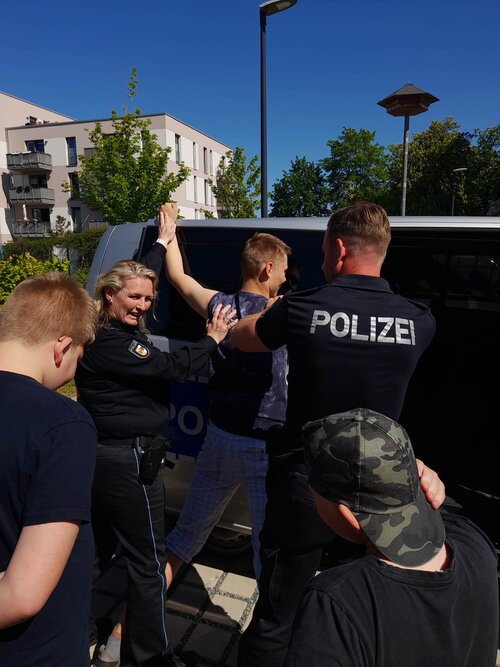 Ein spannender Vormittag endete mit einer Fragerunde an die Beamten und dem Probetragen der Schutzausrüstung.