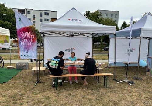 Mit unserer Zentrale im Puschkinring sind wir ein Teil des Stadtteiles Schönwalde 1. Und da es für uns wichtig ist, in unserer Nachbarschaft aktiv zu sein, waren wir auch gerne Teil des Stadtteilfestes von Schönwalde 1, welches am 05.07.2025 von der WGG ausgerichtet wurde. Gemeinsam mit uns waren unter anderem noch die WGG, Die StraSos und die Stadtwerke mit dabei.