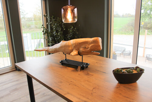 Dem folgten wir und luden unser Auto voll mit großen Bildern, Holzskulpturen, Wanddekorationen und vielem mehr und stellten diese den Räumen des Restaurants als Leihgabe zur Verfügung. Gemeinsam mit der Restaurantleitung Frau Paulsen und dem Geschäftsführer der Gastronomie Herrn Schäfer berieten wir die Dekorierung der Räume. Die Haushandwerker leisteten großartige Arbeit und die Eröffnung des Restaurants war gerettet!