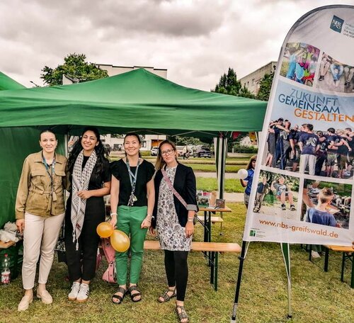 Beim diesjährigen Stadtteilfest am Samstag in Schönwalde I präsentierte die NBS stolz ihre Integrationsprojekte. Dabei waren die Mitarbeiter*innen unserer Integrationsprojekte an der Erwin-Fischer-Schule sowie unseres Projekts "Ankommen in Vorpommern-Greifswald" vertreten.