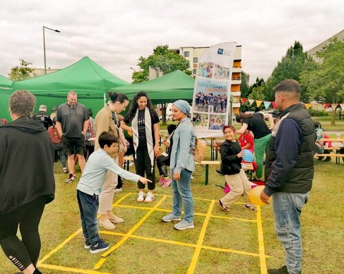 Der Stand des NBS lud Groß und Klein zum gemeinsamen Spielen ein, was eine wunderbare Gelegenheit bot, miteinander in Kontakt zu treten und spielerisch Brücken zwischen den Kulturen zu bauen. Anschließend konnten die Besucher*innen leckeren Tee und den traditionellen arabischen Kuchen Basbousa probieren, was für kulinarische Genüsse sorgte.
