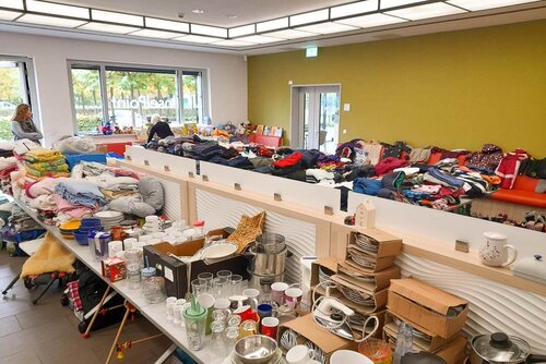 Am 19.10.2022 war es denn soweit: Bei unserem großen Kleiderbasar hatten Geflüchtete aus der Ukraine die Möglichkeit, sich Kleidung und diverse Haushaltsgegenstände kostenfrei mitzunehmen. Das Angebot wurde sehr gut angenommen. Viele waren der Ankündigung gefolgt und schon bald war der Spendenberg deutlich kleiner geworden. Es war ein toller Tag, voll schöner Begegnungen und unendlicher Dankbarkeit auf Seiten der Nehmenden. In den folgenden Tagen erhalten noch einige Familien und Einrichtungen die Möglichkeit, sich Benötigtes aus den Spenden auszuwählen.