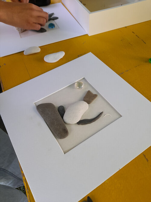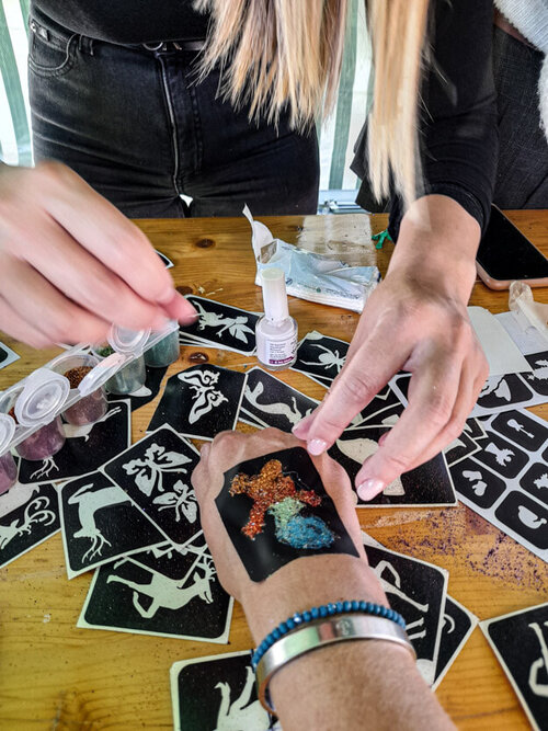 Die einzelnen Wohngruppen haben vielerlei Stände angeboten, an denen man sich die Zeit vertreiben konnte. So gab es unter anderem die Möglichkeit, mit Steinen, die die Wohngruppen "Am Ryck" selbst gesammelt hat, Bilder zu basteln. Und von der "Clearingstelle" in Greifswald gab es das Angebot, in einer Druckwerkstatt Beutel zu gestalten. Das "Jugendhilfezentrum Strelahaus" verschönerte unzählige Arme mit Glitzertattoos. Und bei der Wohngruppe "Janus" konnte man Bogenschießen zu lernen.