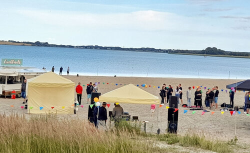 Die Idee war also geboren und auch die Location schnell gefunden. Es sollte das Strandbad Eldena werden! Das geht natürlich am besten im Sommer! Und so stieg die Fete am 22.07.2023 im Strandbad mit DJ, Essen und Trinken und viel bunter Deko und ganz, ganz viel Sand und zum Glück auch recht gutem Wetter!