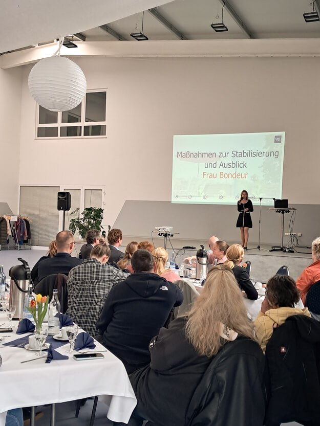 Und so wurden durch unsere Bereichsgeschäftsführung, Frau Bondeur, auch gleichsam geplante Maßnahmen vorgestellt, um kosten- und ressourcenschonender unsere täglichen Aufgaben zu bewältigen, um wirtschaftlich stabil zu sein – immer mit dem Fokus auf unsere Betreuten, die mit unserer Unterstützung auf ein selbstständiges Leben vorbereitet werden soll.