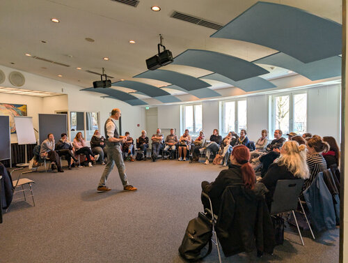 Los ging der Tag mit einem sehr unterhaltsamen Vortrag zu „Mut zur Heiterkeit und Beziehung“. Sören Kaspersinski vom Deutschen Institut für Humor entführte uns in seine Welt als Klinikclown und Humortrainer und zeigte uns, wie man auch in schwierigen Situationen mit Humor weiterkommt und spielerisch schnell in Beziehung kommt. Wichtig sei bei Humor aber immer, die richtige Zeit, den passenden Ort und die Perspektive nicht aus den Augen zu verlieren, so Sören Kaspersinski. Den Workshop können Sie hier nachlesen.