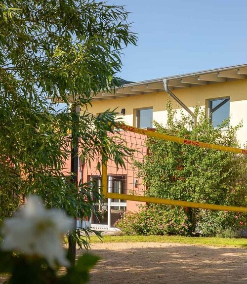 Für die Gestaltung gruppendynamischer Prozesse durch Freizeitangebote stehen den Bewohner:innen ein großzügiger Gemeinschaftsraum und eine Essküche zur Verfügung. Des Weiteren befindet sich auf dem Gelände ein Anbau, in welchem ein Sportraum eingerichtet ist.
